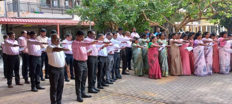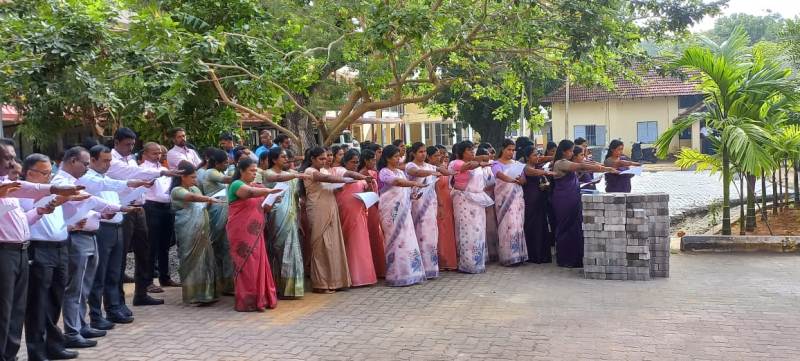 தொடர்ந்து யாழ்ப்பாணம் வலயக் கல்வி அலுவலக உத்தியோகத்தர்களால் தேசிய கீதம் இசைக்கப்பட்டது. தொடர் நிகழ்வாக நாட்டிற்காக தமது உயிர்களை அர்ப்பணித்த சகலரையும் நினைவுகூரும் வகையில் இரண்டு நிமிட மௌனஅஞ்சலி செலுத்தப்பட்டது.அதன் பின்னர் சகல பதவியணி உறுப்பினர்களும் அரச சேவை உறுதிமொழியினை எடுத்துக்கொண்டனர்.