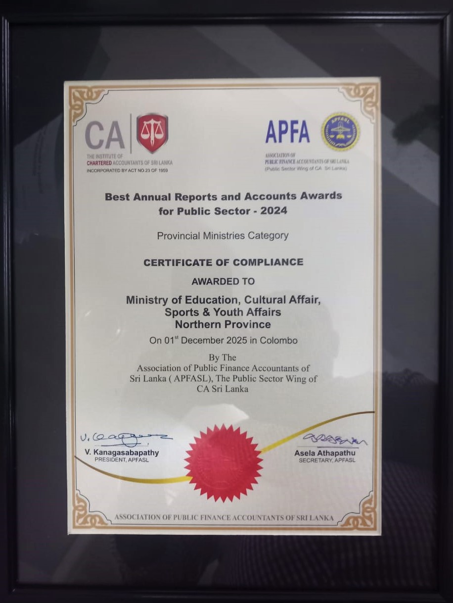 இலங்கை பொது நிதி கணக்காளர்கள் சங்கம் (Association of Public Finance Accountants of Sri Lanka - APFASL) மற்றும் இலங்கை பட்டயக் கணக்காளர் நிறுவனத்தின் பொது துறை பிரிவு இணைந்து ஏற்பாடு செய்த சிறந்த வருடாந்த அறிக்கை மற்றும் கணக்குகள் விருதுகள் – 2025 வழங்கும் விழா, 2026 பெப்ரவரி 5ஆம் திகதி BMICH இல் நடைபெற்றது.