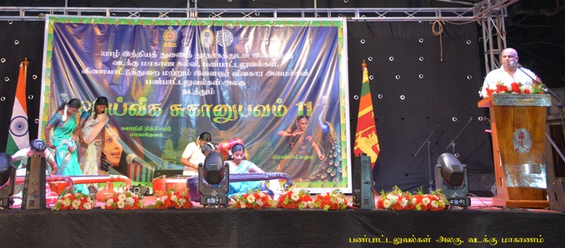 விருந்தினர்கள் மலர்மாலை அணிவிக்கப்பட்டு நிகழ்வு மேடைக்கு அழைத்து வரப்பட்டதுடன் மங்கல விளக்கேற்றலுடன் நிகழ்வு ஆரம்பமானது. நல்லூர் சாரங்கம் இசைமன்றத்தினரின் தமிழ்த்தாய் வாழ்த்து, பொன்னாலை சந்திரபரத கலாலயம் கலைமன்றத்தினரின் வரவேற்பு நடனம், நல்லூர் சாஹித்திய வீணாலயா குழுவினரின் விரலிசைநாதசங்கமம் ஆகிய நிகழ்வுகள் உள்ளுர் கலைஞர்களால் இந்நிகழ்வுகளினை சிறப்பிக்கும் முகமாக வழங்கிய கலை ஆற்றுகைகளாக இருந்தது. அதனைத் தொடர்ந்து வடக்கு மாகாண கல்வி, பண்பாட்டலுவல்கள், விளையாட்டுத்துறை மற்றும் இளைஞர் விவகார அமைச்சின் செயலாளர் அவர்களின் தலைமையுரை, யாழ்-இந்திய துணைத்தூதுவர் அவர்களின் பிரதம விருந்தினர் உரை என்பன இடம்பெற்றன.